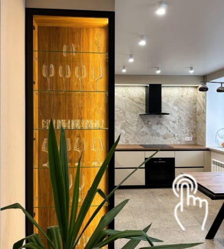 Описание: Дизайн интерьера кухни на заказ. Открывание фасада от нажатий.
